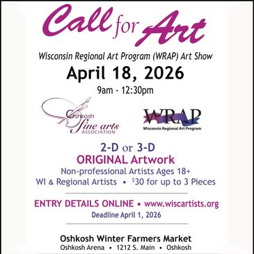 WI Regional Arts Program (WRAP) pop-up show on Sat. April 18 at the Oshkosh Arena.