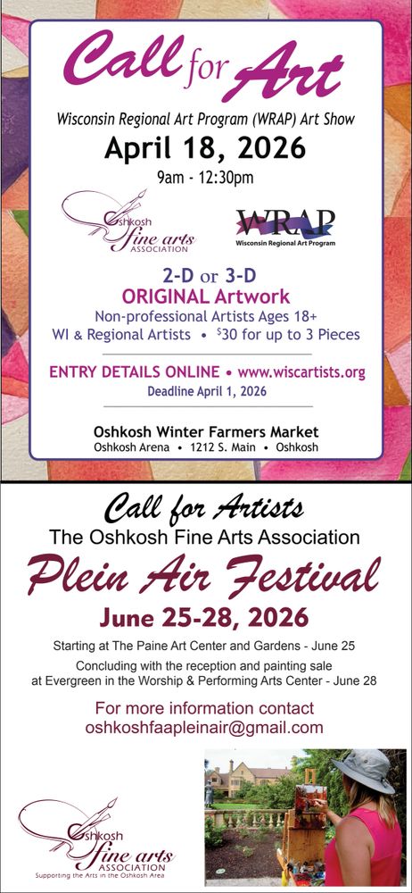 OFAA will hold a WI Regional Arts Program (WRAP) pop-up show on Sat. April 18 at the Oshkosh Arena.
